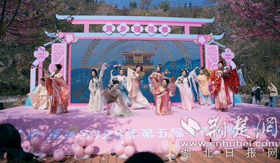 當(dāng)天上午10時許,青春洋溢的群舞《櫻你而來》驚艷登場,靈動的舞姿與漫山櫻花交相輝映,拉開了活動序幕。