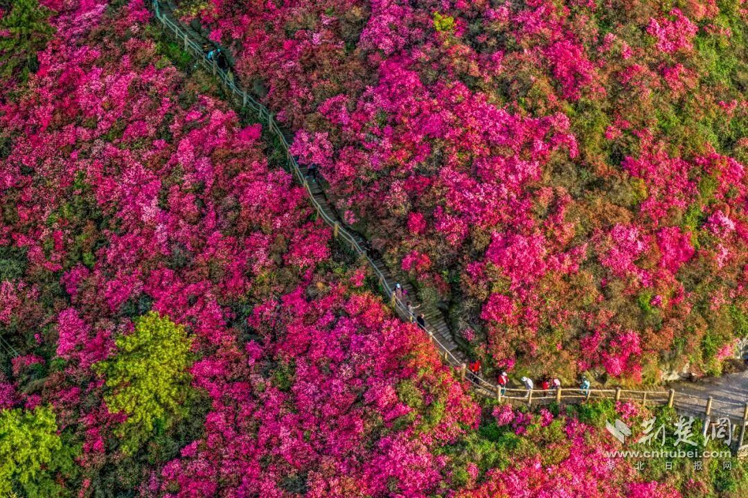 荊楚網(wǎng)(湖北日?qǐng)?bào)網(wǎng))訊(通訊員黃宣)3月21日,2026武漢木蘭云霧山第十七屆杜鵑花嘉年華在黃陂木蘭云霧山景區(qū)啟幕。目前,景區(qū)內(nèi)花宇山、花海等核心賞花點(diǎn)的杜鵑花已進(jìn)入初放期,漫山紅遍,景色蔚為壯觀。