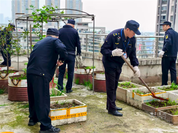 清理屋頂菜地。 通訊員供圖