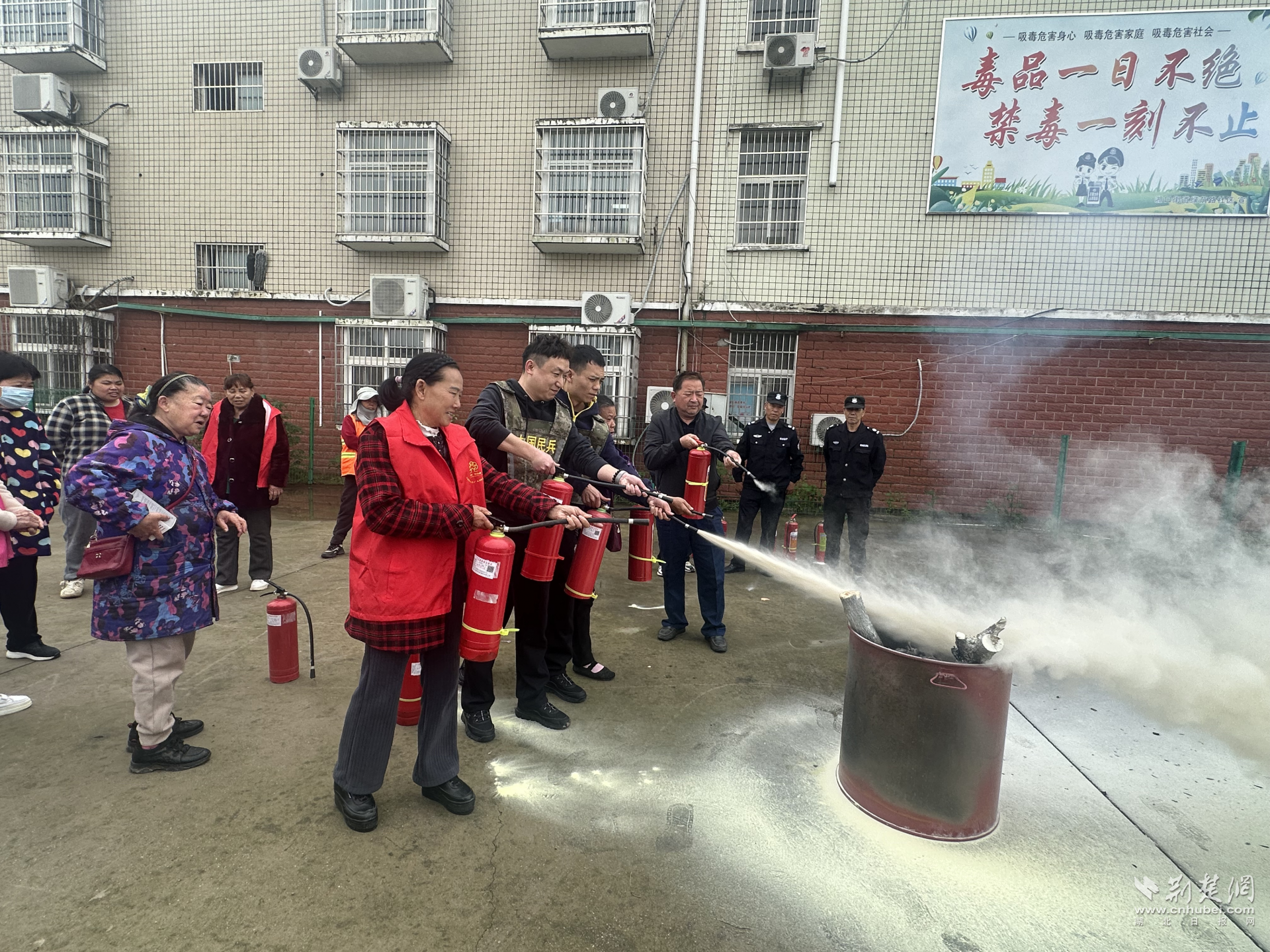 消防實操區(qū)居民實操滅火器。通訊員供圖