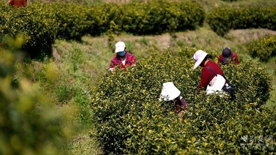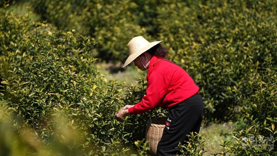 荊楚網(wǎng)(湖北日報(bào)網(wǎng))訊(通訊員 陳祥 陳鈺)一芽一葉一抹香,一人一簍采茶忙。4月9日,湖北省蘄春縣大同鎮(zhèn)操山村黃金茶種植基地里,茶農(nóng)們正在搶摘清明節(jié)后的黃金茶,為之后的大規(guī)模炒制提供新鮮原料。