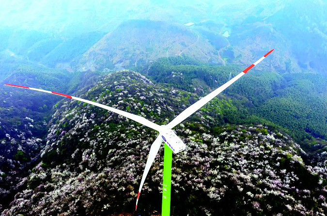3月30日,鳥瞰咸寧大幕山,一臺(tái)臺(tái)發(fā)電風(fēng)機(jī)如鳥兒展翅,“徜徉”在漫山櫻花花海中。大幕山風(fēng)力發(fā)電場(chǎng)由中廣核集團(tuán)投資5.5億元建設(shè),計(jì)劃安裝29臺(tái)風(fēng)力發(fā)電機(jī)組,總裝機(jī)規(guī)模63.8兆瓦,年發(fā)電量約1.1億千瓦時(shí)。目前已安裝風(fēng)機(jī)16臺(tái),預(yù)計(jì)5月底完工、并網(wǎng)發(fā)電。