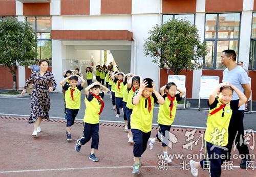 圖為防災(zāi)減災(zāi)活動現(xiàn)場師生逃生演練。 官易洲攝