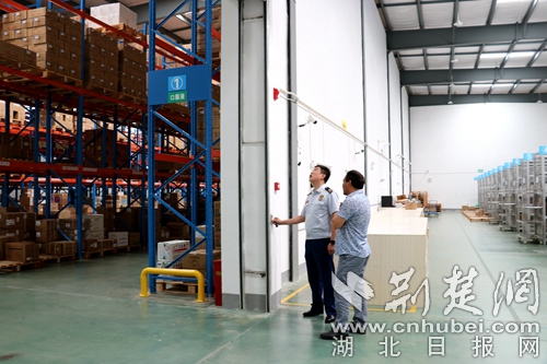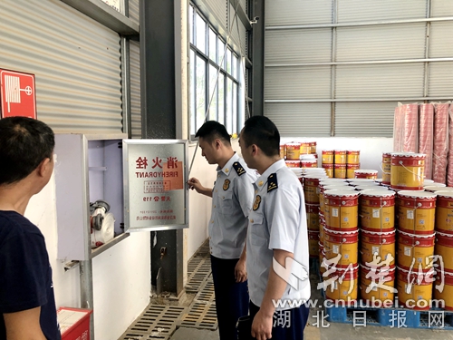 圖為消防執(zhí)法人員檢查倉儲消防設(shè)施現(xiàn)場。 阮子祥攝