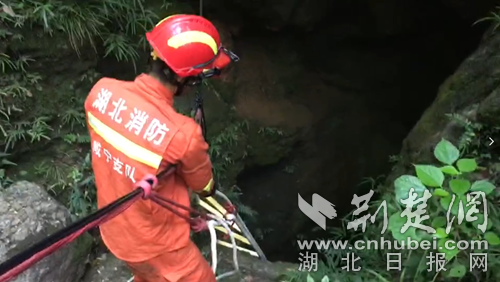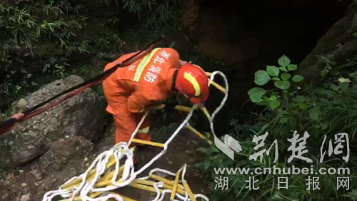 消防員搭建軟梯準(zhǔn)備入洞營救?!》侗蟊髷z