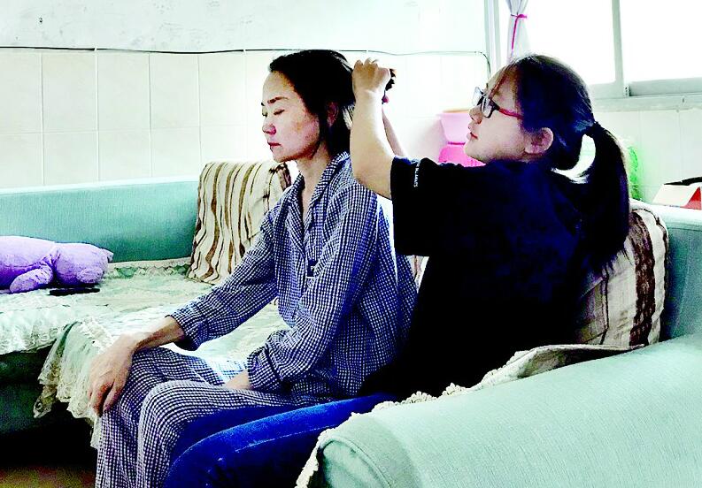 王渝玥原計劃跟同學開暑期培訓班,這樣可給媽媽掙點藥費,但沒想到媽媽病情惡化,她只好放棄開班的想法全身心陪護母親。從沒干過家務(wù)的她,拿起了拖把拖地,學會了簡單做飯,每天幫母親洗澡,扶著母親上下床、上衛(wèi)生間?!吧洗髮W的日子越來越近,我要好好陪媽媽,她已沒法陪我一起去北京了……”王渝玥說到這里淚如雨下。