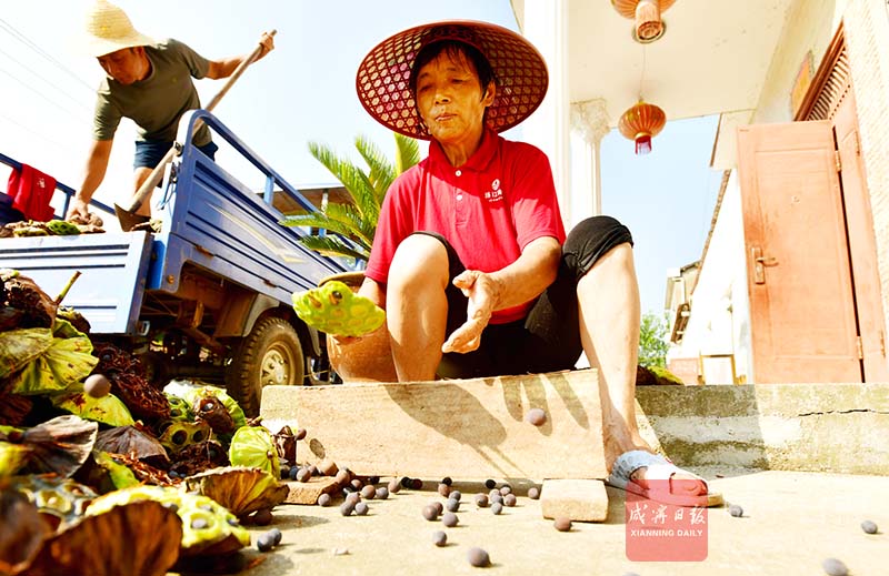 “現(xiàn)在每天5點半就下田,天太熱,一般采到9點多收工,怕中暑。”劉思群用衣袖擦了一把汗水介紹,夏天是蓮子的高產(chǎn)季,村里大概有60多戶種湘蓮,每天100多人在田里勞作。