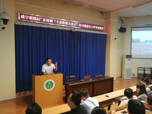 咸寧網(wǎng)訊 記者 金娓 通訊員 趙君:9月8日,咸寧職業(yè)技術(shù)學(xué)院邀請(qǐng)智通教育的智能制造專家李向陽(yáng)來(lái)校開展“做”時(shí)代的急先鋒——高職學(xué)生“工業(yè)機(jī)器人技術(shù)”專業(yè)職業(yè)規(guī)劃,現(xiàn)場(chǎng)座無(wú)虛席、氣氛熱烈。