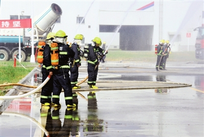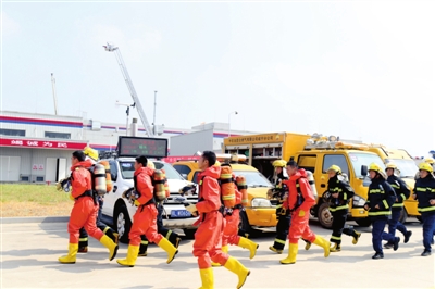 由200余人組成的民兵防火救災(zāi)應(yīng)急救援營,迅即分成偵查組、救生組、滅火組三個救援小組,配備應(yīng)急搶修車、舉高噴射車、水罐泡沫消防車、灑水車、發(fā)電車等20余輛救援車輛,進入事發(fā)現(xiàn)場。