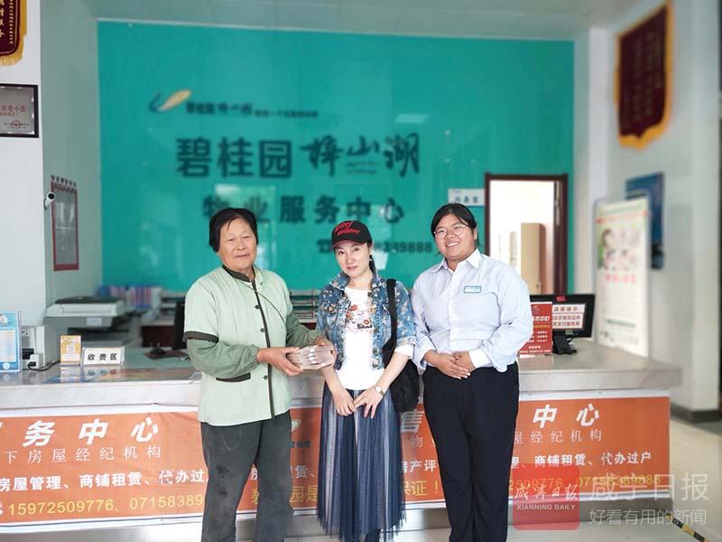 (香城都市報(bào)記者 陳志茹)面對撿到的5萬元現(xiàn)金,平生第一次見到這么多錢的保潔員車細(xì)英沒有動心,而是主動聯(lián)系物業(yè)尋找失主,并將5萬元現(xiàn)金物歸原主。近日,這件暖心事在咸寧碧桂園( 梓山湖)悅湖小區(qū)廣泛傳播,車細(xì)英也獲得市民點(diǎn)贊。