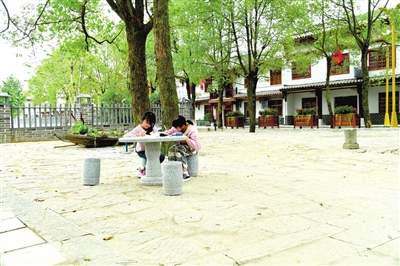 寧?kù)o的羊樓洞廣場(chǎng)上,安靜地做功課的孩子?!⊥ㄓ崋T 黃富清 攝
