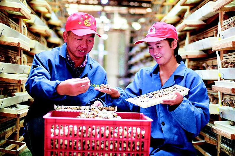 10月29日,在通城縣沙堆鎮(zhèn)石沖村,貧困戶游明夫妻在撿鵪鶉蛋。在鎮(zhèn)村干部的幫扶下,游明自學養(yǎng)殖鵪鶉技術,利用空閑廠房辦起了養(yǎng)殖場,并提供鵪鶉種苗,傳授養(yǎng)殖技術,帶動周邊村6戶貧困戶一起脫貧致富,助力鄉(xiāng)村振興。(視界網(wǎng) 劉建平 攝)