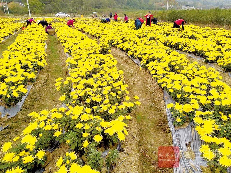 咸寧網(wǎng)訊 咸寧日?qǐng)?bào)全媒體記者 吳文謹(jǐn)、通訊員 吳劍、張璐報(bào)道:近日,在咸安區(qū)桂花鎮(zhèn)萬(wàn)壽橋村,群眾們正在采摘菊花,臉上露出燦爛的笑容。