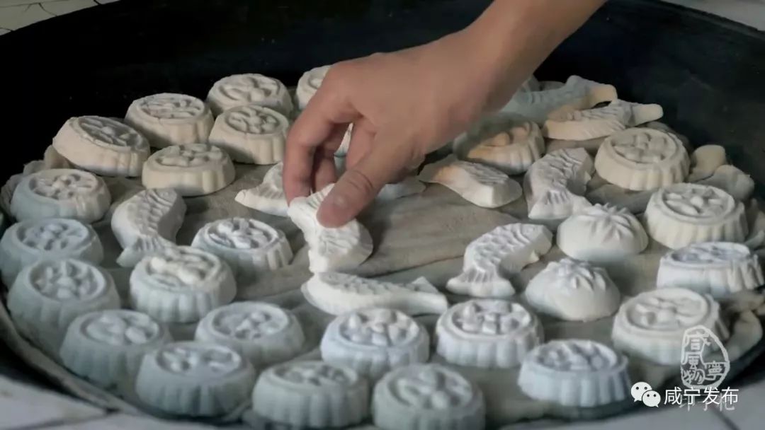 印子粑是咸寧鄉(xiāng)村廣為流傳的民俗食品,一般在春節(jié)和孩子一歲生日時(shí)制作。粑印用木制,每個(gè)粑印有1-3個(gè)空模,形狀一般只有小茶杯口大。粑印里刻有反向的如魚以及花、草等各種動(dòng)植物圖案,制作出來的粑邊緣有一圈花紋,形象生動(dòng),栩栩如生。堆成的粑山,晶瑩透亮,造型美觀,堪稱優(yōu)秀的民間藝術(shù)品。