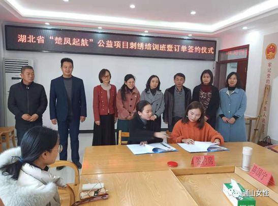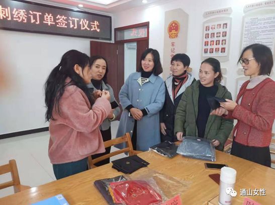 2019年12月11日,通山“繡娘”獲得首批訂單,踏上將“指尖技能”轉(zhuǎn)化為“指尖財(cái)富”的第一步,也是通山縣“巧山姑”手工技能培訓(xùn)項(xiàng)目初步成效的體現(xiàn)。訂單設(shè)定老鼠生肖肚兜、高山流水書(shū)簽、小夜燈繡片等12種樣式,共含繡刺任務(wù)500余件。繡娘收到訂單消息后,各個(gè)歡欣鼓舞,喜笑顏開(kāi),不少繡娘們互相鼓勁打氣,摩拳擦掌準(zhǔn)備大干一場(chǎng)。回應(yīng)繡娘們的殷切期盼,訂單簽訂儀式于當(dāng)天下午在通山縣南林橋鎮(zhèn)石門(mén)村舉行,咸寧市婦聯(lián)主席陳海蓮、副主席張繼萍、通山縣副縣長(zhǎng)張曉丹參加活動(dòng),縣婦聯(lián)主席張丹主持。