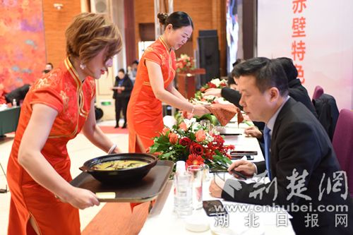 經(jīng)過精心制作,菜品《三顧茅廬》《蒲圻魚嘴》《茶香紅酒牛肉》《赤壁魚羊鮮》等極具咸寧地方特色的美食香飄四溢,讓現(xiàn)場觀眾一飽眼福,滿足味蕾需求的同時(shí),也展示了地方飲食文化特色。