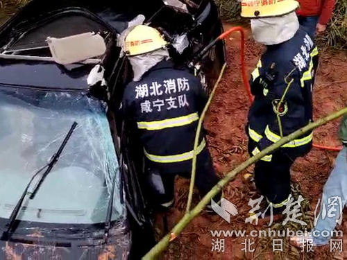 荊楚網(wǎng)消息(通訊員 朱燕林 朱濤)3月28日11時(shí)4分,湖北省咸寧市通山縣大畈鎮(zhèn)隱水洞附近貨車與小車相撞2人被困,接警后,通山縣消防中隊(duì)出動1輛消防車、7名消防員趕赴現(xiàn)場救援。