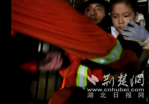 圖為消防員救出被困人員現(xiàn)場。通訊員 葛棟 攝