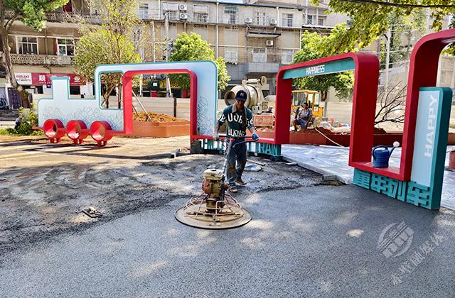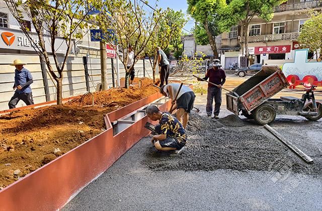 8月8日,在赤壁市車站路兒童友好街區(qū)施工現場,來自赤壁建工集團的工人們,正在機械的配合下,有條不紊地進行著街道改造施工。