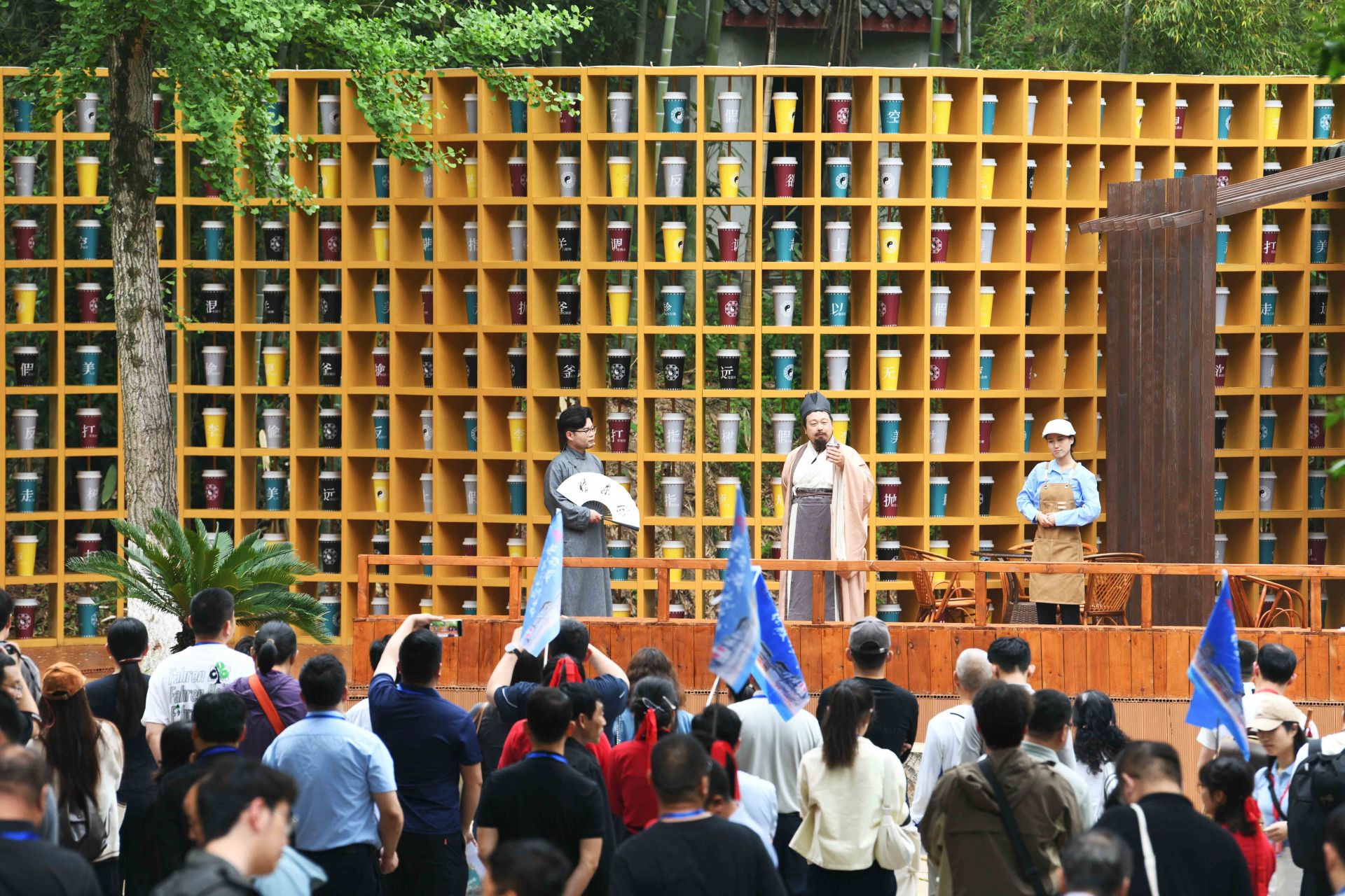 4月26日晚,三國赤壁古戰(zhàn)場景區(qū),《赤壁·借東風(fēng)》實景演藝劇全球首演。一名“說書人”用現(xiàn)代人的口吻,串起一部三國與現(xiàn)代的穿越劇:舞臺上,演員、道具、光影重現(xiàn)“草船借箭”“苦肉計”“空城計”等歷史典故;看臺上,游客化身將士,隨劇情節(jié)奏拍打赤壁非遺——腳盆鼓(相傳為孫劉聯(lián)軍赤壁之戰(zhàn)鼓舞士氣的樂器)……現(xiàn)場,觀眾與演員深度融合,沉浸式體驗三國英雄氣概,仿佛一場跨越千年的對話。
