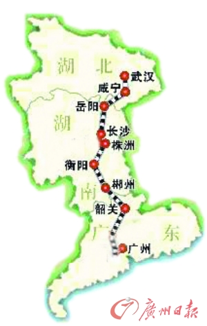按照目前的列車時(shí)刻,廣州至長(zhǎng)沙需6~8小時(shí);而廣州至武漢則需10個(gè)小時(shí)左右。武廣高鐵通車后,廣州至長(zhǎng)沙只需2個(gè)小時(shí),到武漢只需3小時(shí)。城市之間距離的縮短,首先帶來(lái)的是粵、湘、鄂三地人員的流動(dòng)。屆時(shí),佛山人可以搭乘武廣高鐵,早上在佛山飲早茶,中午到長(zhǎng)沙吃湘菜,下午在武漢登黃鶴樓嘆江風(fēng)。