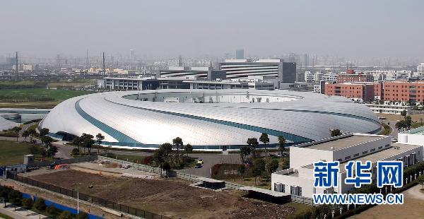 這是“上海光源”鸚鵡螺狀的建筑外景(2009年3月20日攝)。 新華社記者 裴鑫 攝
