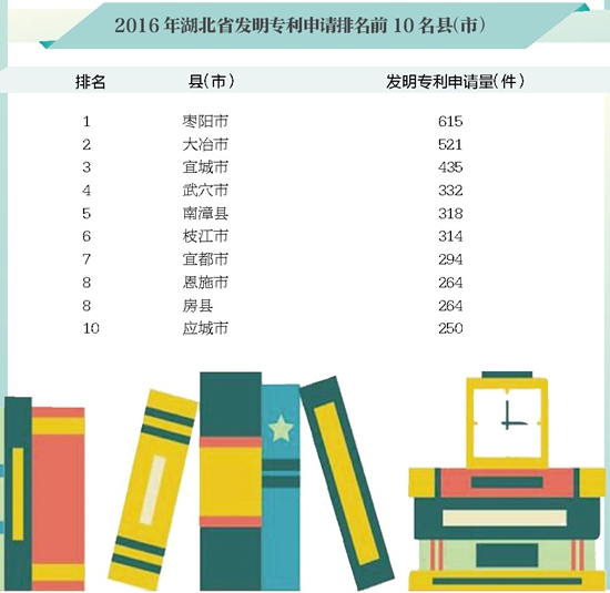 2016年湖北發(fā)明專利申請排名前10名縣(市)